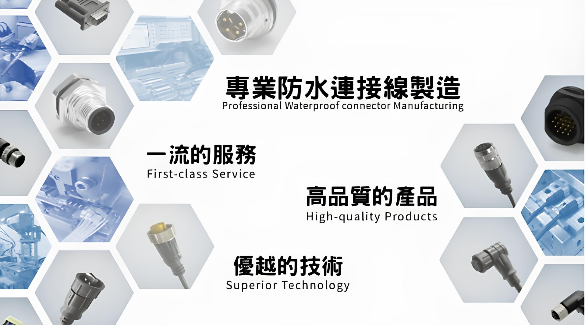 禾剛企業有限公司成立於1997年,起始於電腦周邊配線製造集各式連接線,並於1999年投入生產高品質的防水連接器及防水接頭。公司自成立以來,始終秉持著一流的服務理念,致力於滿足客戶的需求,為各行各業提供卓越的解決方案。並於2020年申請通過ISO9001 : 2015,我們不僅提升了自身的管理能力,也為客戶創造了一個值得信賴的品牌形象。我們將繼續努力,堅持以客戶為中心,不斷改進,讓每一位客戶都能感受到我們的用心和專業。 禾剛企業的核心:提供一流的服務,使用優越的技術,製作高品質的產品。