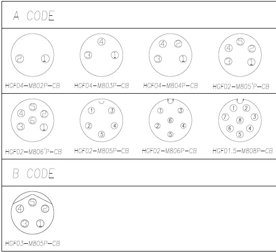 M8_180度射出成型母防水連接線材有多種CODE編碼設計,其防呆設計可以有效防止連接器插頭與插座的誤插,確保每一個PIN與對應設備連接正確無誤。這對於多PIN應用尤為重要,能夠有效避免由誤差引發的系統故障,提高整體系統的可靠性。